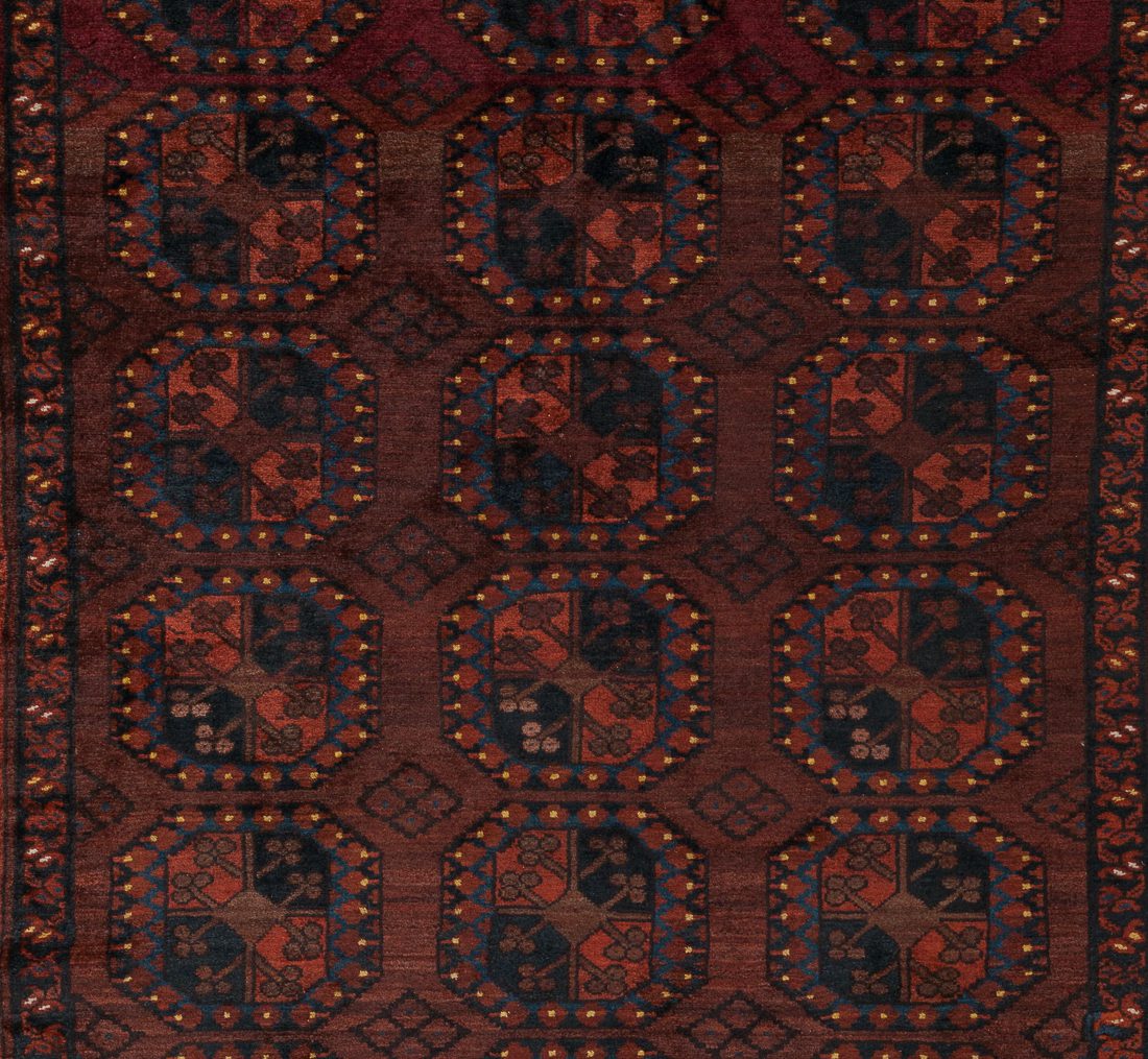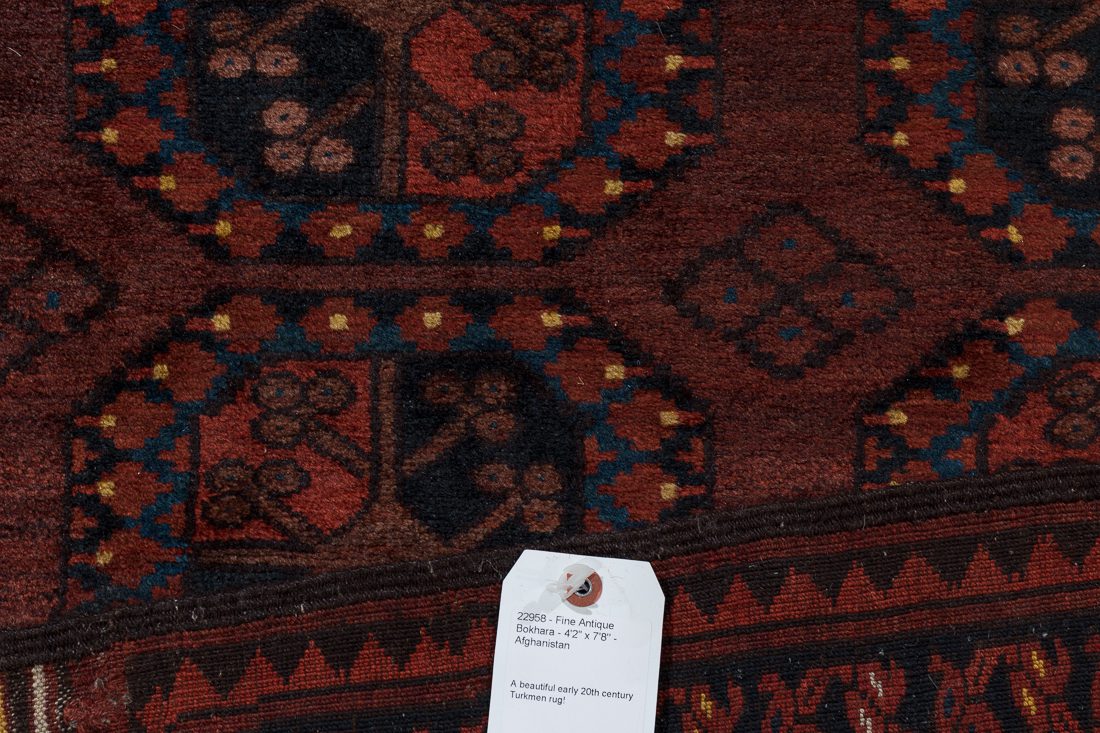 Antique Afghan Bokara rug handwoven in the early twentieth century. Very soft wool pile and foundation. This piece has been cleaned and is in great shape for its age.