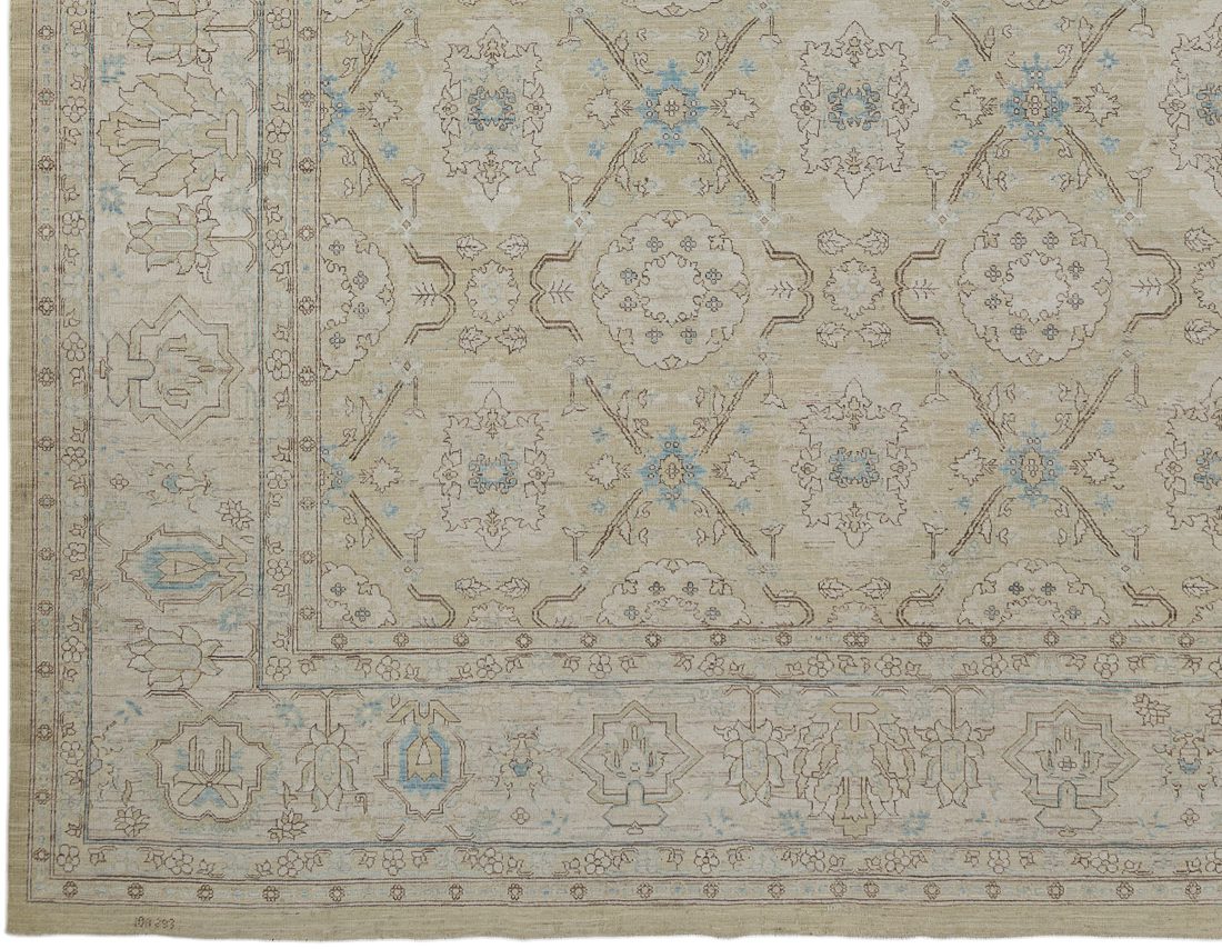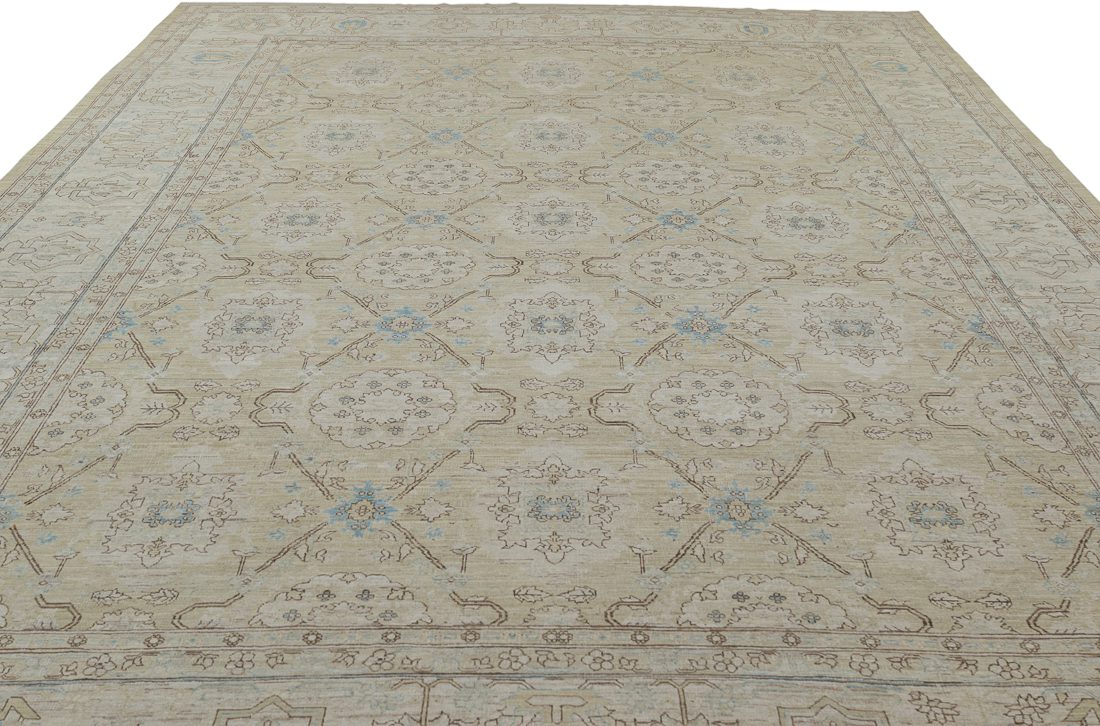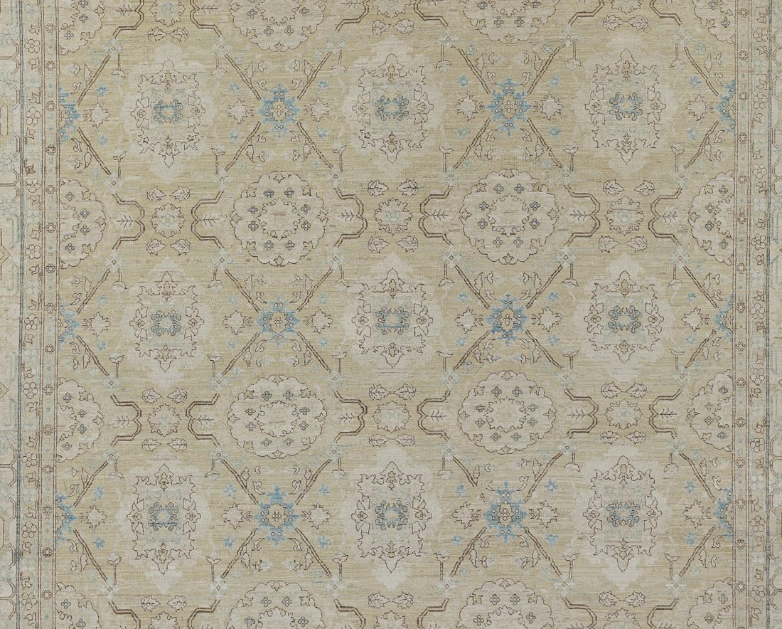 Exceptional Agra design carpet hand knotted in northern Afghanistan by Hazara women using handspun Ghazni wool. Every detail in this rug is perfection, from the wool, to the dyes, to the weaving and finally the extensive “antique” finishing.