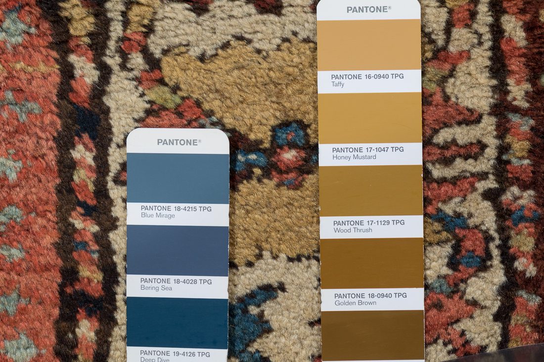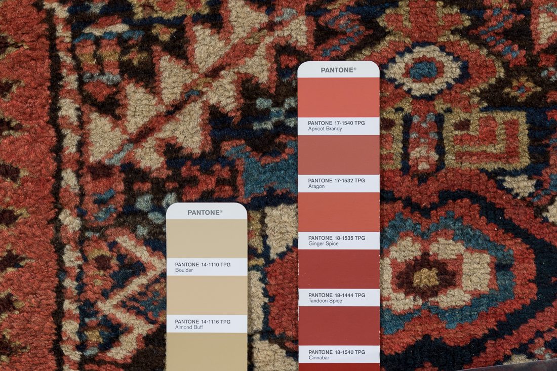 PANTONE shades: We do our best to find the closest match to one or multiple colors in the rug. The shade card we choose may not always be the perfect one, but we do our best (it’s a lot of work)! At times we may show multiple shade cards so you can get a better sense of color. Finally, when photographing rugs from the same group (shipment, collection, SKU, etc.) we will often use one or two shade card(s) so that you can get a good sense of the coloration. Hope you enjoy viewing our beautiful rugs!