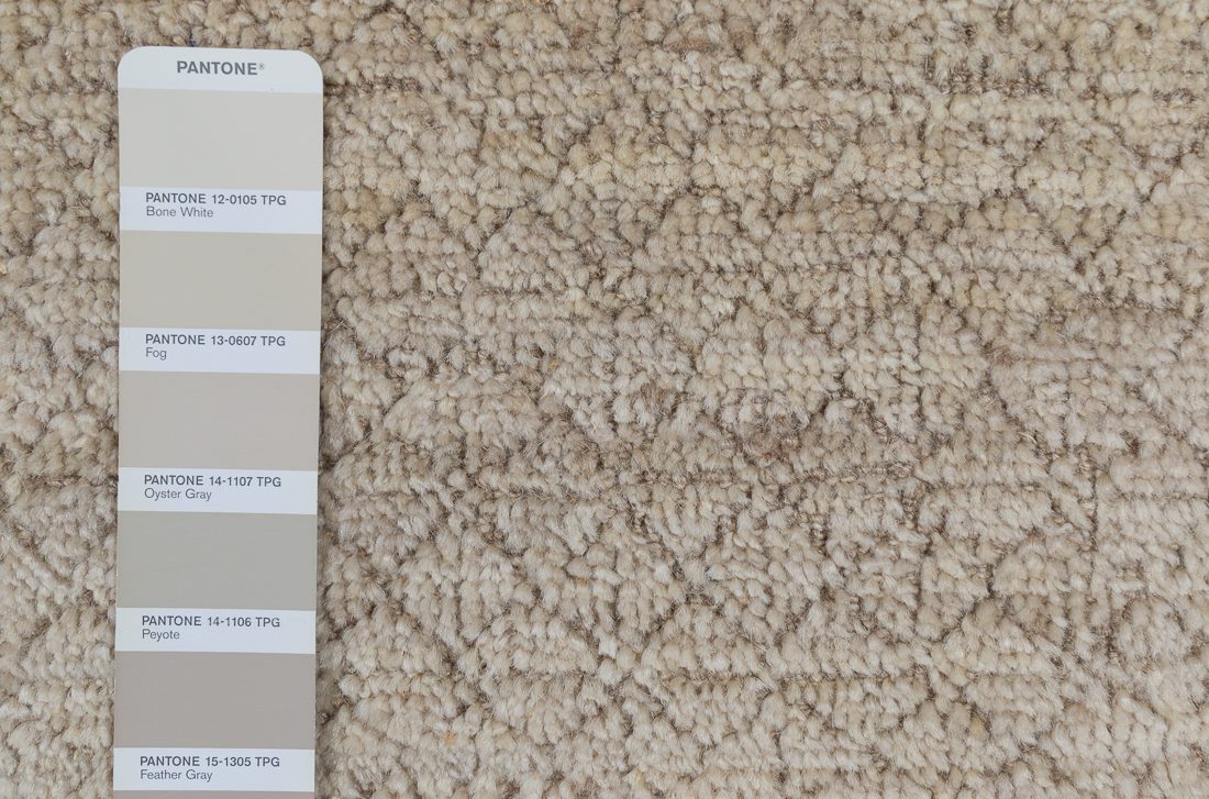 PANTONE shades: We do our best to find the closest match to one or multiple colors in the rug. The shade card we choose may not always be the perfect one, but we do our best (it’s a lot of work)! At times we may show multiple shade cards so you can get a better sense of color. Finally, when photographing rugs from the same group (shipment, collection, SKU, etc.) we will often use one or two shade card(s) so that you can get a good sense of the coloration. Hope you enjoy viewing our beautiful rugs!