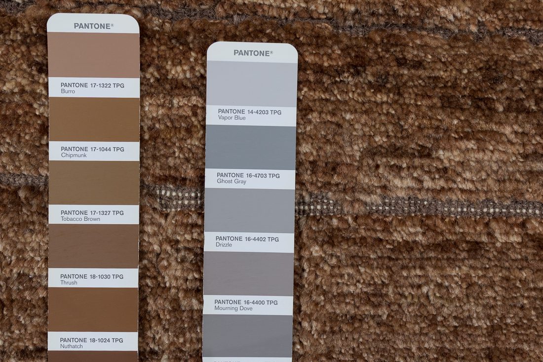 PANTONE shades: We do our best to find the closest match to one or multiple colors in the rug. The shade card we choose may not always be the perfect one, but we do our best (it’s a lot of work)! At times we may show multiple shade cards so you can get a better sense of color. Finally, when photographing rugs from the same group (shipment, collection, SKU, etc.) we will often use one or two shade card(s) so that you can get a good sense of the coloration. Hope you enjoy viewing our beautiful rugs!
