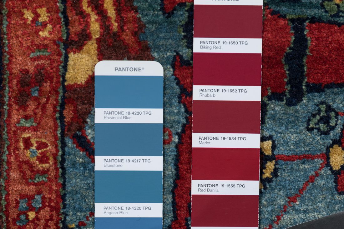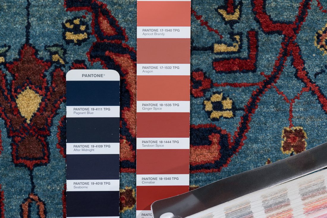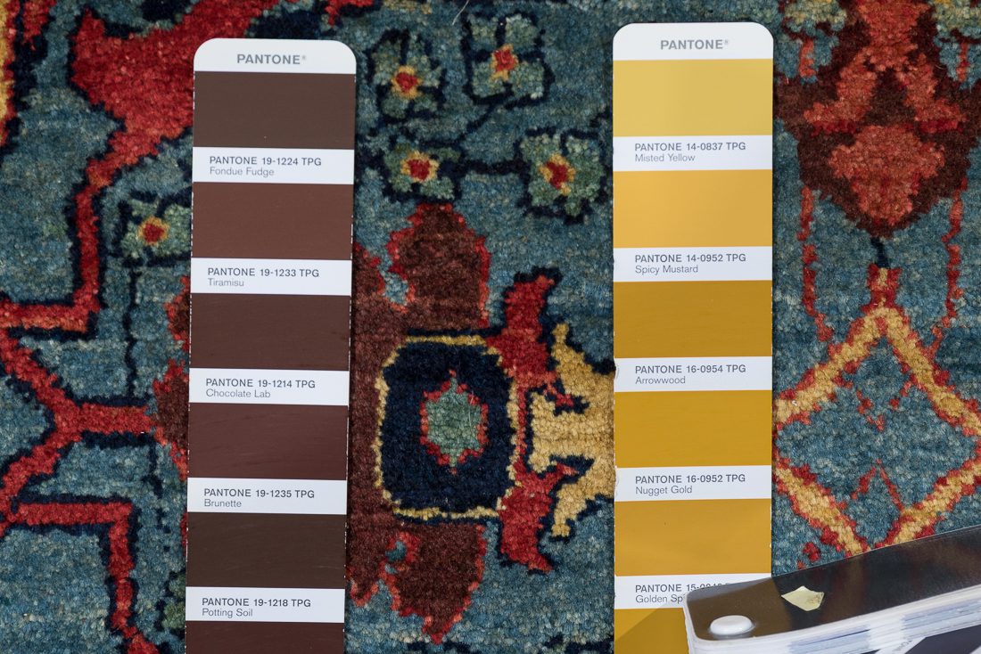 PANTONE shades: We do our best to find the closest match to one or multiple colors in the rug. The shade card we choose may not always be the perfect one, but we do our best (it’s a lot of work)! At times we may show multiple shade cards so you can get a better sense of color. Finally, when photographing rugs from the same group (shipment, collection, SKU, etc.) we will often use one or two shade card(s) so that you can get a good sense of the coloration. Hope you enjoy viewing our beautiful rugs!