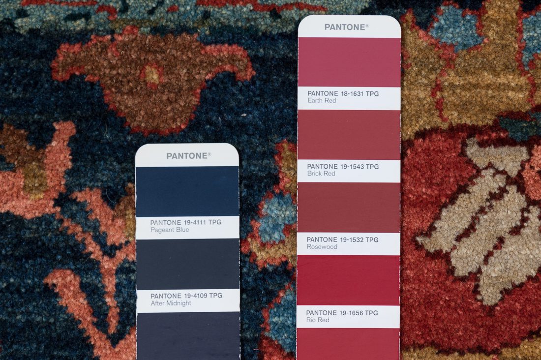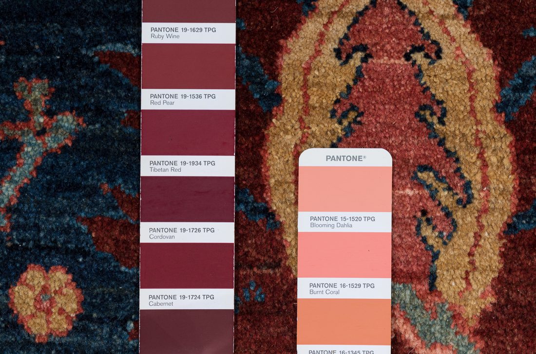PANTONE shades: We do our best to find the closest match to one or multiple colors in the rug. The shade card we choose may not always be the perfect one, but we do our best (it’s a lot of work)! At times we may show multiple shade cards so you can get a better sense of color. Finally, when photographing rugs from the same group (shipment, collection, SKU, etc.) we will often use one or two shade card(s) so that you can get a good sense of the coloration. Hope you enjoy viewing our beautiful rugs!