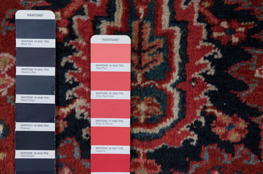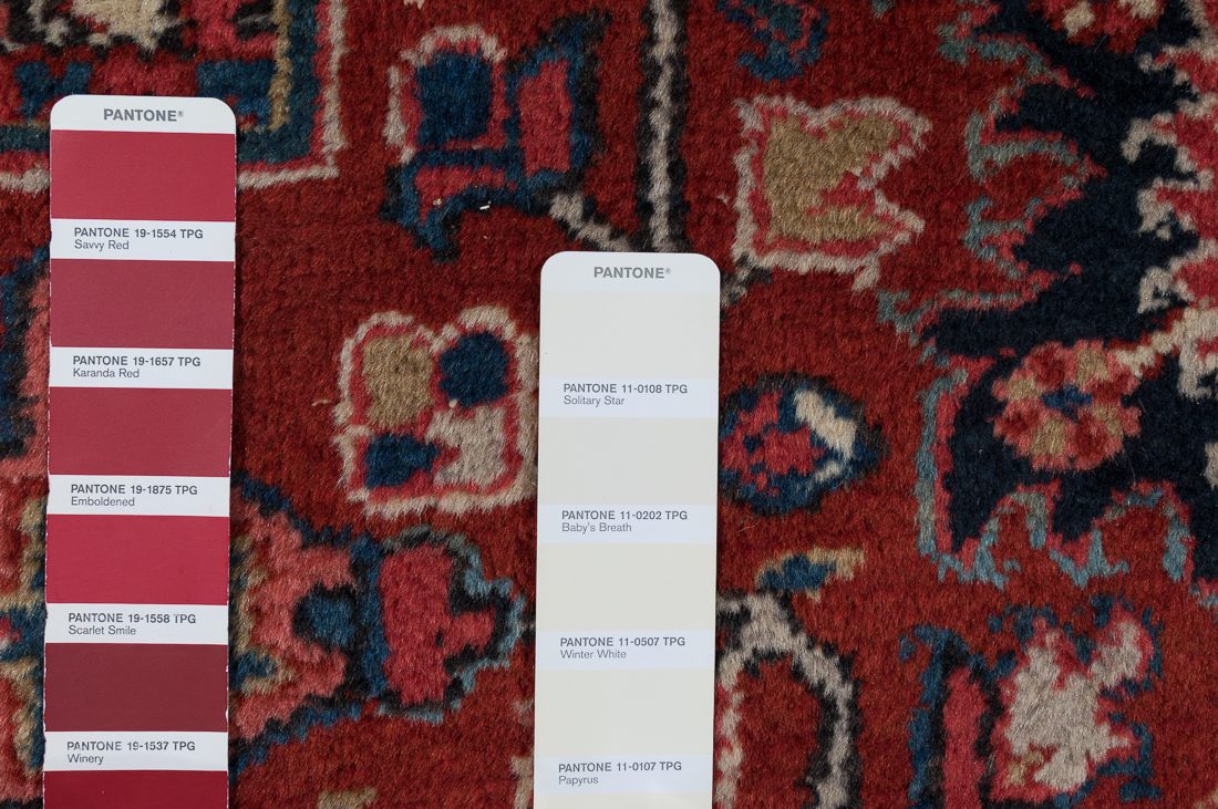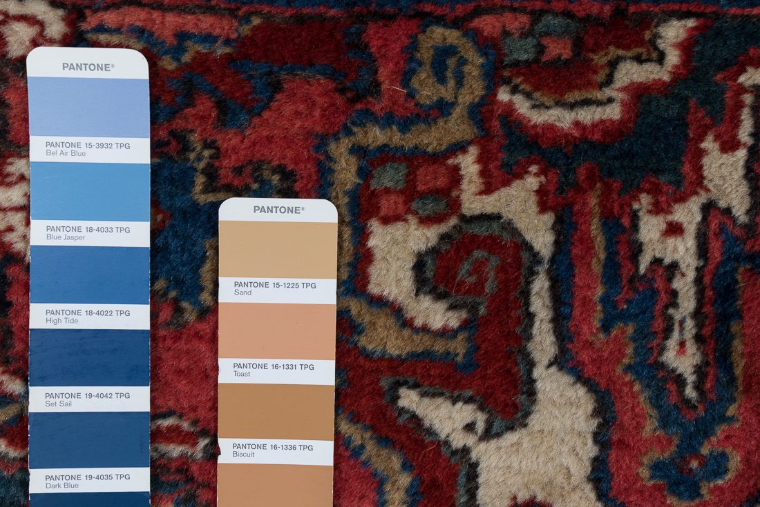 PANTONE shades: We do our best to find the closest match to one or multiple colors in the rug. The shade card we choose may not always be the perfect one, but we do our best (it’s a lot of work)! At times we may show multiple shade cards so you can get a better sense of color. Finally, when photographing rugs from the same group (shipment, collection, SKU, etc.) we will often use one or two shade card(s) so that you can get a good sense of the coloration. Hope you enjoy viewing our beautiful rugs!
