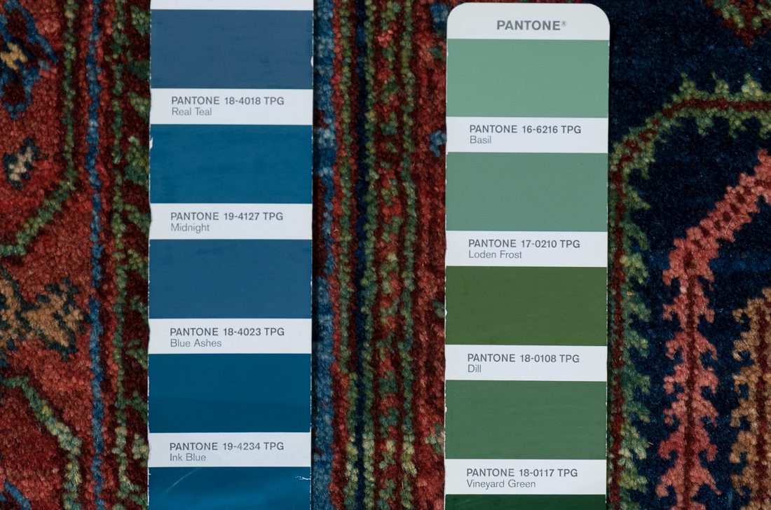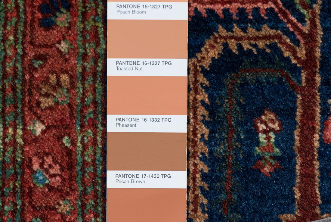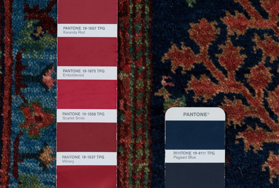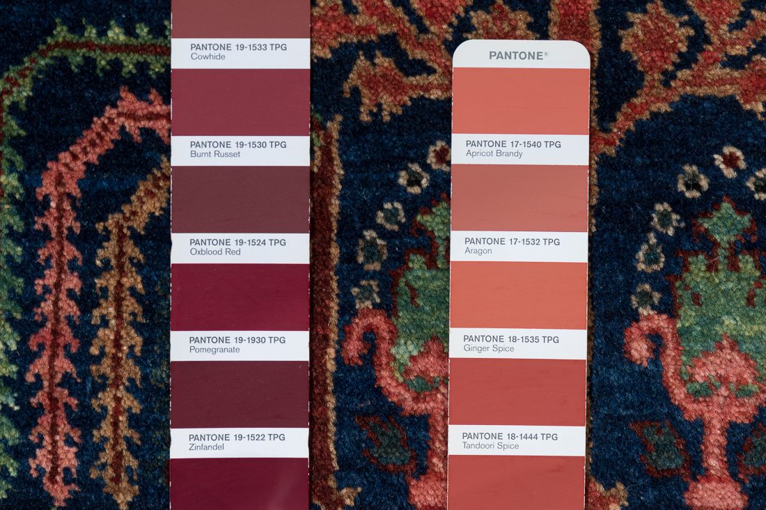 PANTONE shades: We do our best to find the closest match to one or multiple colors in the rug. The shade card we choose may not always be the perfect one, but we do our best (it’s a lot of work)! At times we may show multiple shade cards so you can get a better sense of color. Finally, when photographing rugs from the same group (shipment, collection, SKU, etc.) we will often use one or two shade card(s) so that you can get a good sense of the coloration. Hope you enjoy viewing our beautiful rugs!