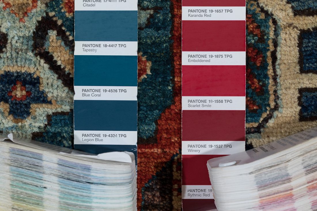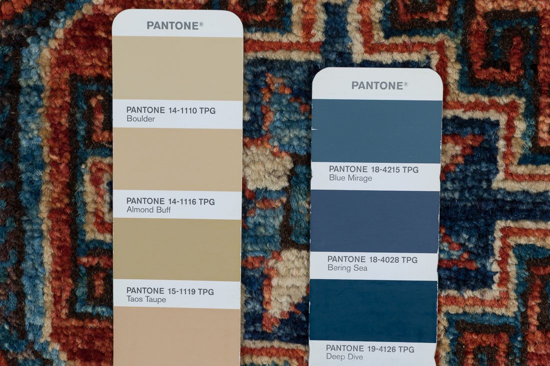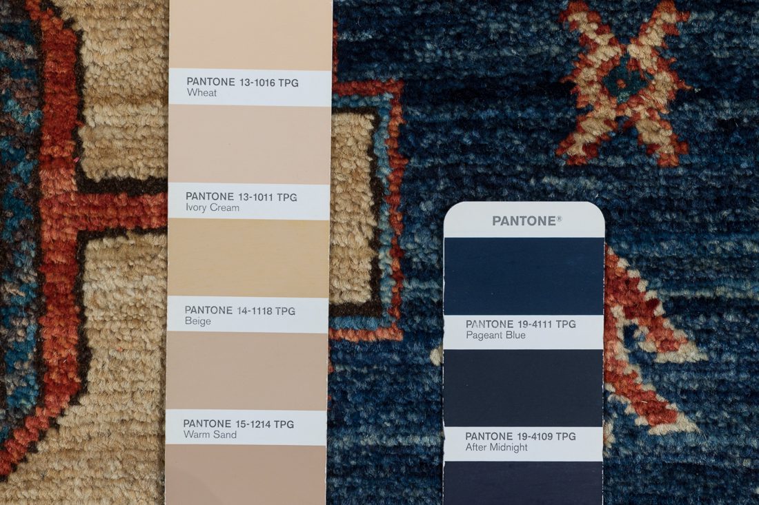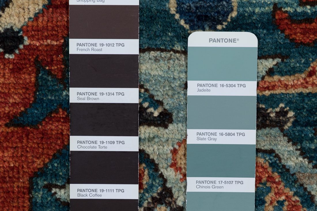 PANTONE shades: We do our best to find the closest match to one or multiple colors in the rug. The shade card we choose may not always be the perfect one, but we do our best (it’s a lot of work)! At times we may show multiple shade cards so you can get a better sense of color. Finally, when photographing rugs from the same group (shipment, collection, SKU, etc.) we will often use one or two shade card(s) so that you can get a good sense of the coloration. Hope you enjoy viewing our beautiful rugs!