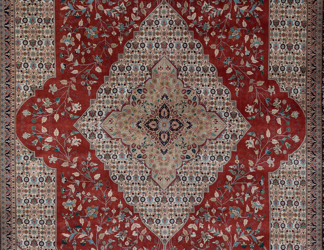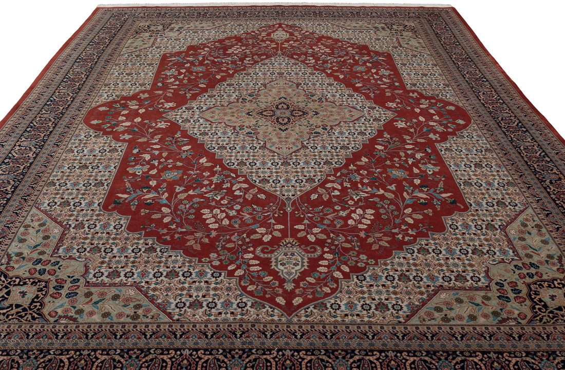 320 KPSI high quality heirloom carpet. Incredibly soft genuine New Zealand worsted wool, super classy look, and quality that will last. This is an exquisite fine Tabriz, an exceptional quality that is not being made anywhere in the world today. Kebabian’s Persian Revival Collection features beautiful hand knotted rugs and carpets based on classic Persian and east Asian rug designs. The quality and workmanship is excellent across the board, the beauty timeless. This revival rug was hand knotted in India using fine wool and dyes.