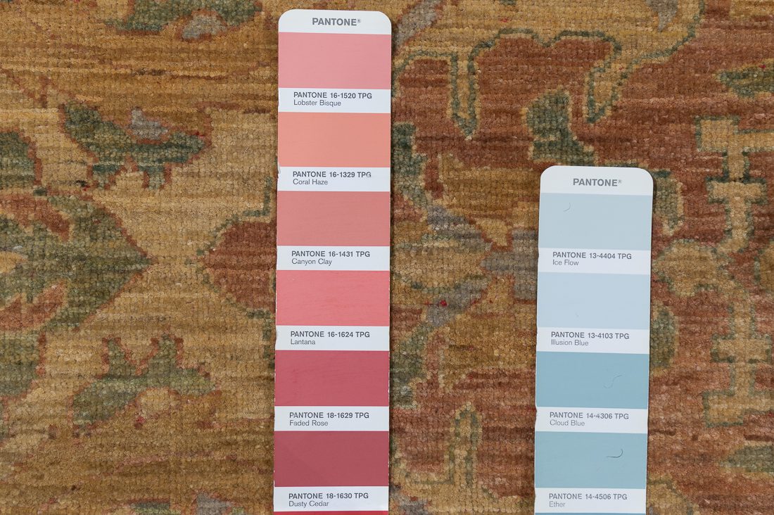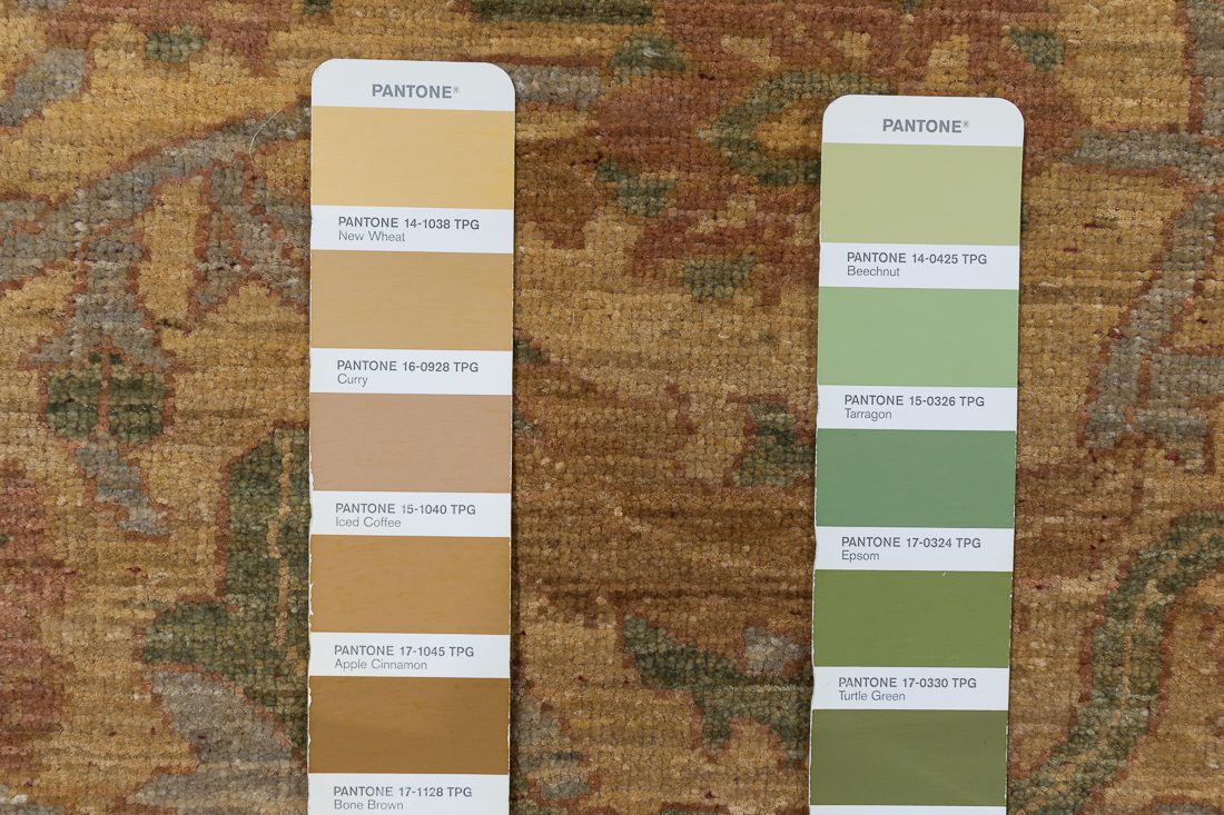 PANTONE shades: We do our best to find the closest match to one or multiple colors in the rug. The shade card we choose may not always be the perfect one, but we do our best (it’s a lot of work)! At times we may show multiple shade cards so you can get a better sense of color. Finally, when photographing rugs from the same group (shipment, collection, SKU, etc.) we will often use one or two shade card(s) so that you can get a good sense of the coloration. Hope you enjoy viewing our beautiful rugs!
