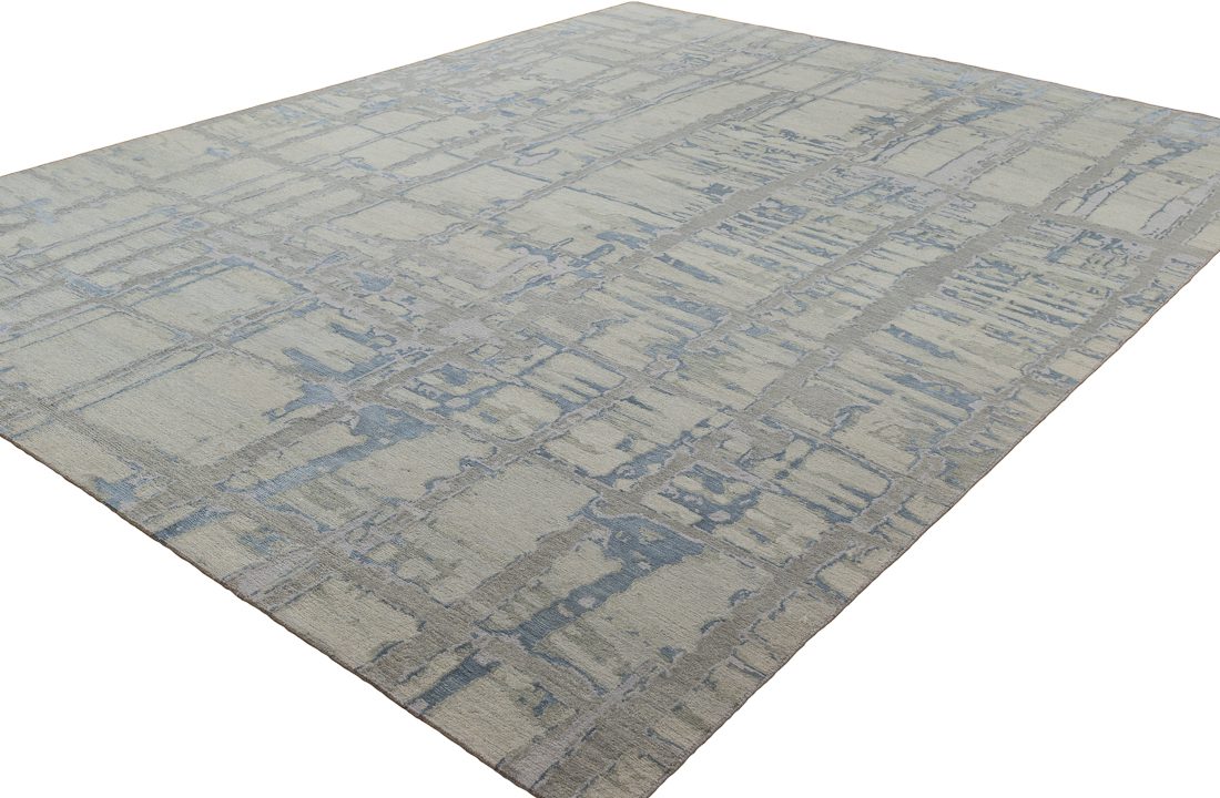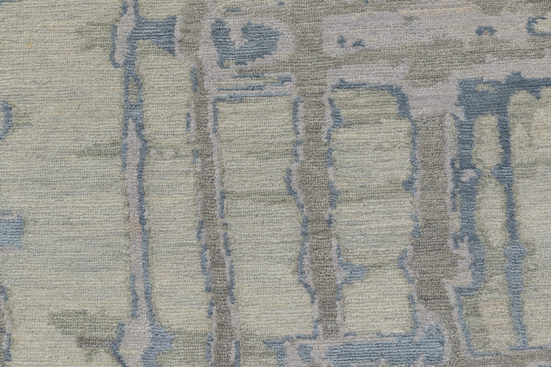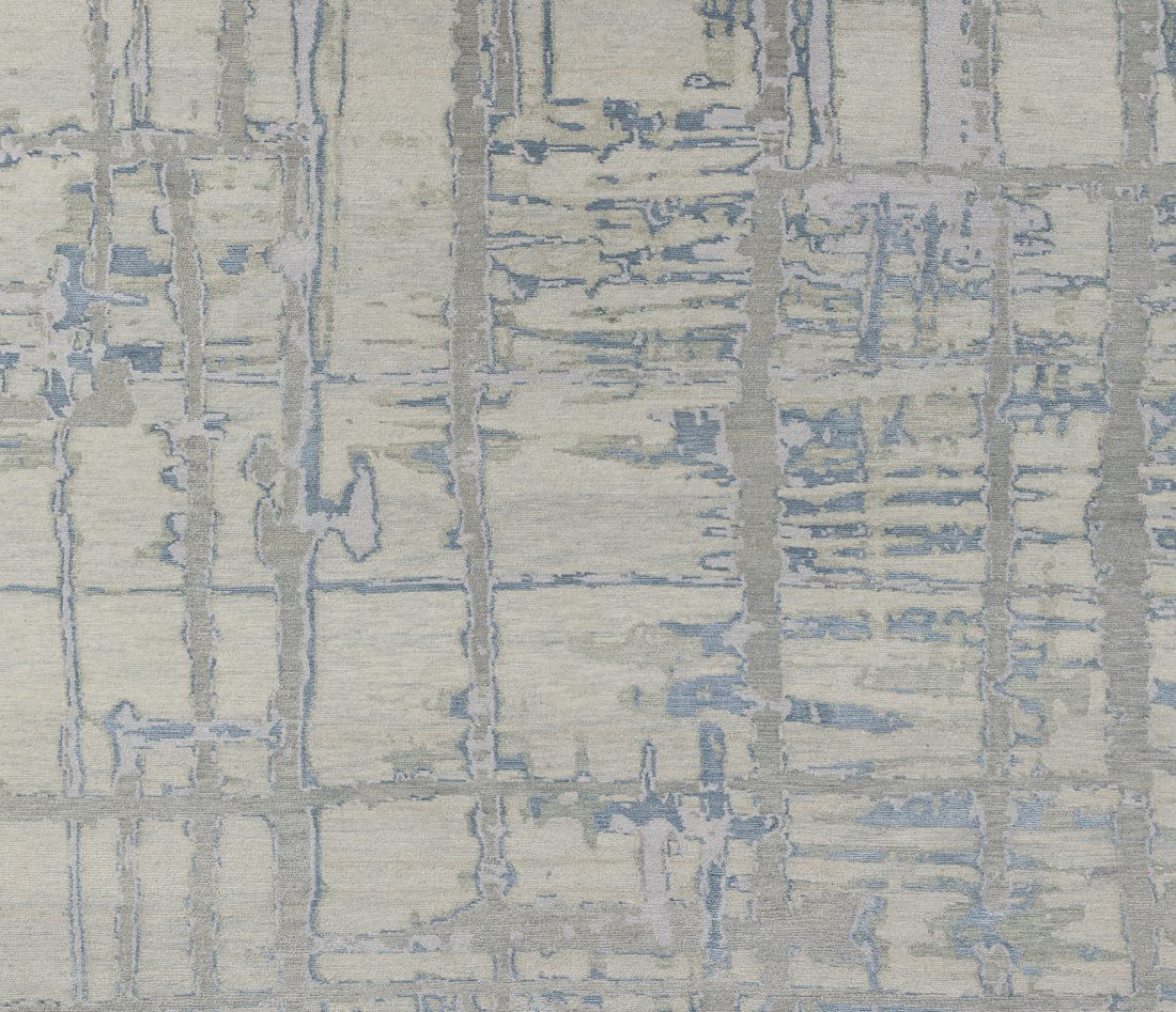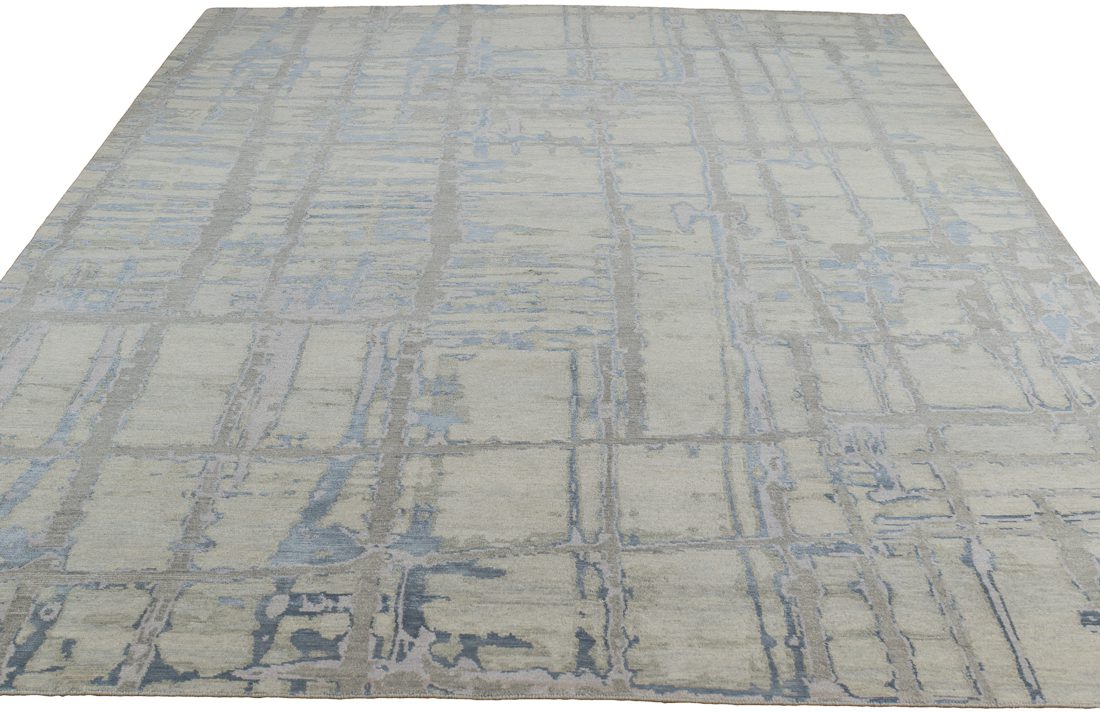 Tibetan Birchbark Gray/Blue Wool and Silk Rug