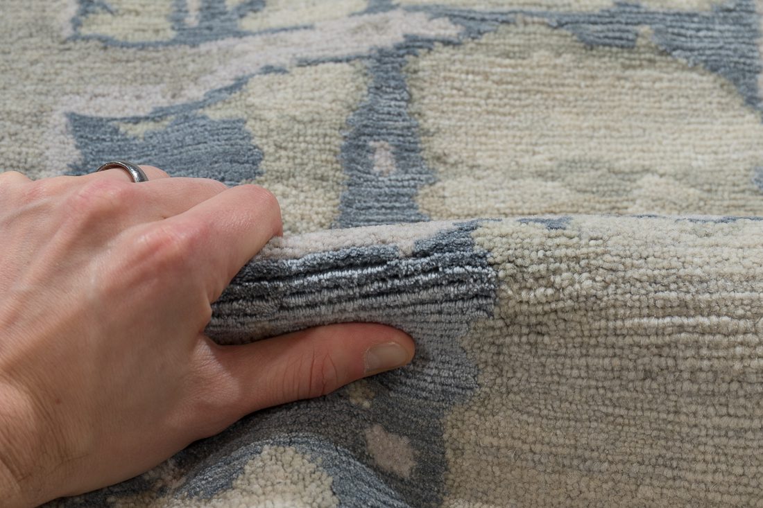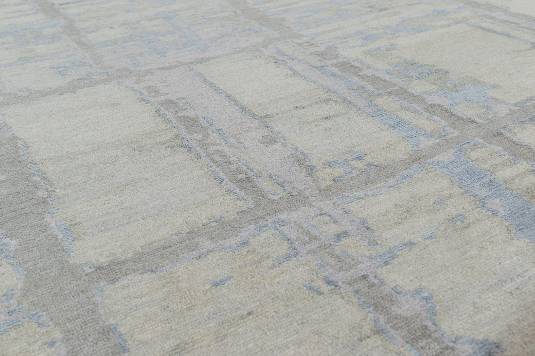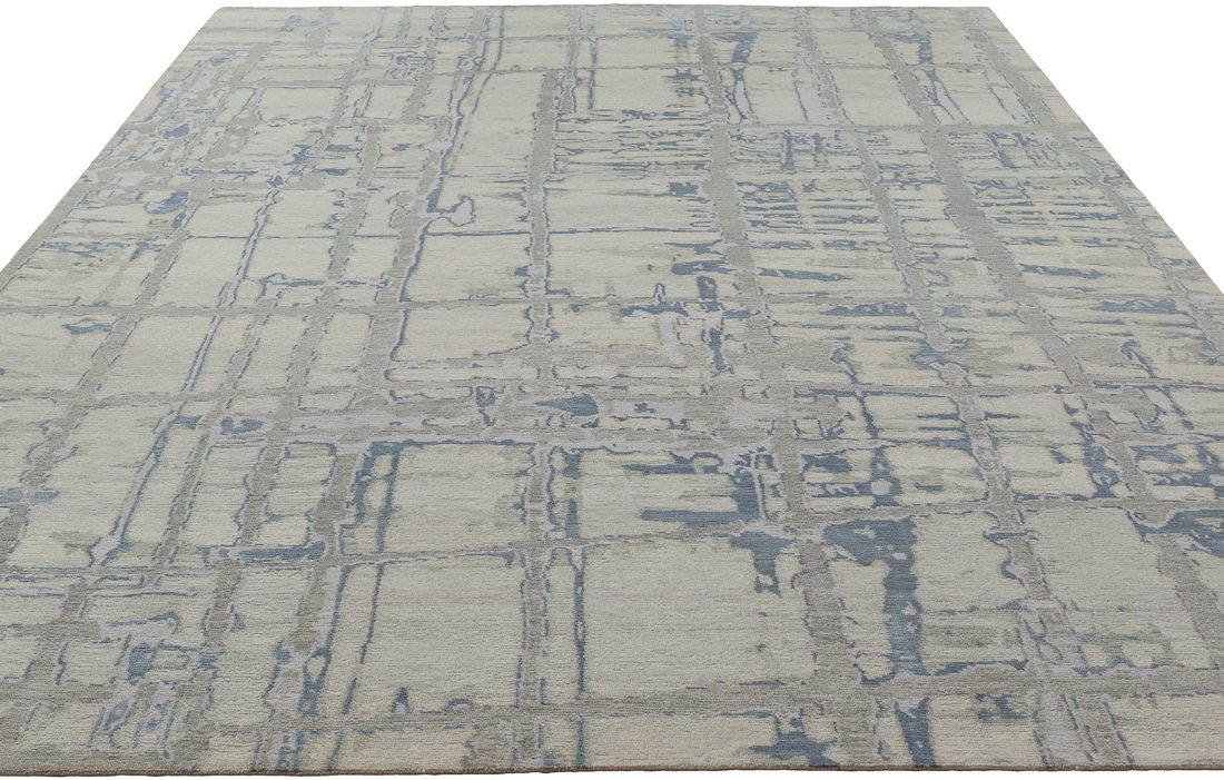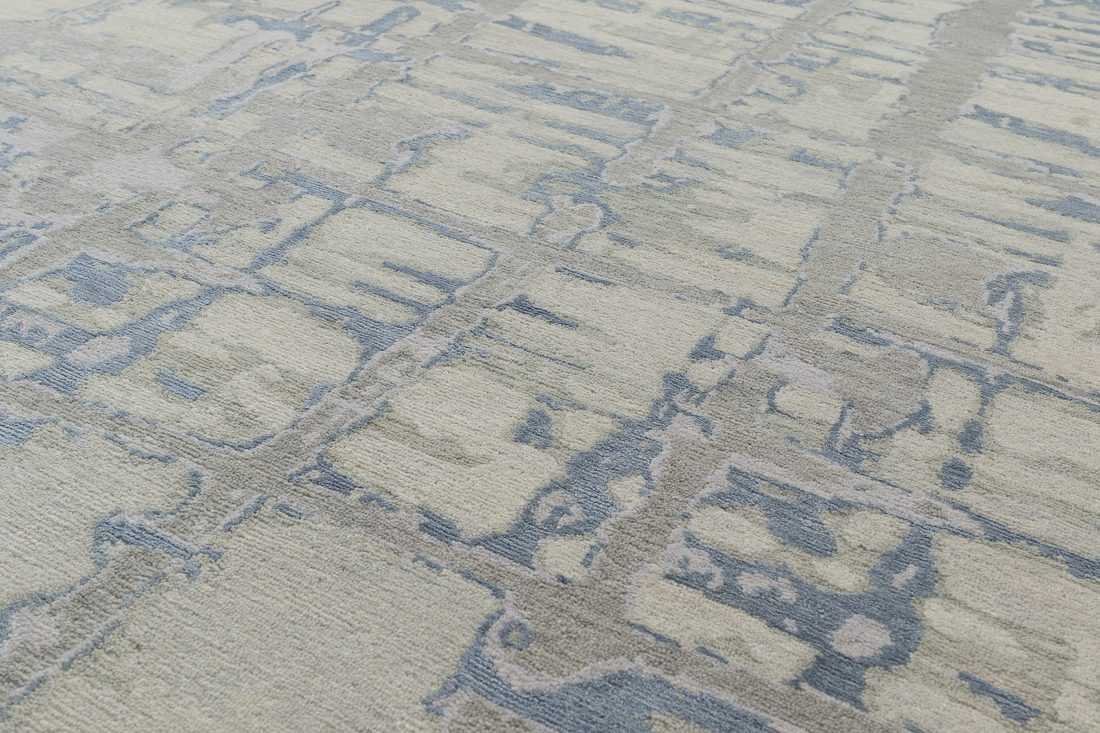 Tibetan Birchbark Gray/Blue Wool and Silk Rug