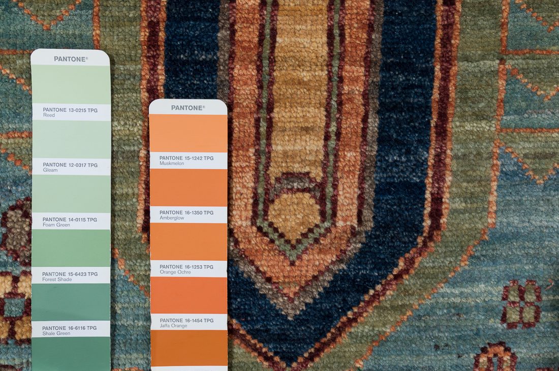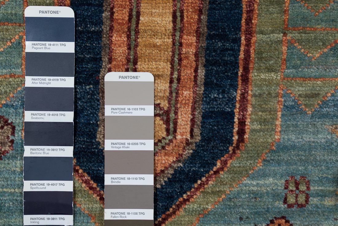 PANTONE shades: We do our best to find the closest match to one or multiple colors in the rug. The shade card we choose may not always be the perfect one, but we do our best (it’s a lot of work)! At times we may show multiple shade cards so you can get a better sense of color. Finally, when photographing rugs from the same group (shipment, collection, SKU, etc.) we will often use one or two shade card(s) so that you can get a good sense of the coloration. Hope you enjoy viewing our beautiful rugs!